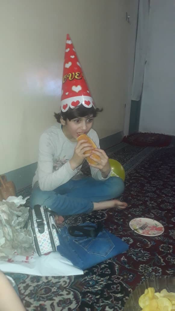 Maryam Ahmadvand's birthday party was held on 10/18/1399 at the request of the Iranian Children's Charity. Her gift was prepared at her own request, which was a pair of leggings and a small bag for girls.
